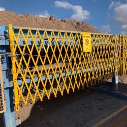 La Reja de Protección Retráctil consiste en una Estructura Metálica para delimitar áreas, fabricado con perfiles de acero al carbono con un diseño especial tipo tijeras, usado como cerramiento para proteger o separar espacios en las áreas de operación donde existan maquinarias y/o equipos robustos en funcionamiento continuo que impliquen un riesgo para una persona que transite por la vía de operación de estas mismas.