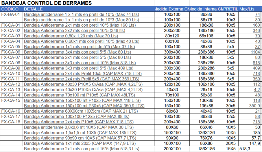 La Bandeja Antiderrame es una barrera de contención que prevé el desborde de químicos e hidrocarburos en un área determinada, limitando los efectos contaminantes producto de estos fluidos. Evita contaminación de suelos de acuerdo con la norma ISO 1401